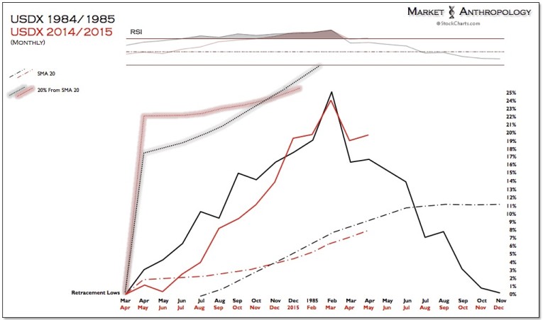 That said, over the intermediate-term we remain in the rising yield camp, with a natural target for the 10-year yield of testing long-term overhead resistance which would come in ~ 2.6 percent later this year (Figure 20). This is largely dependent on growth both here in the US and abroad, which we suspect will support a reflationary basket of positions as we look for the US dollar to retrace the large move extended over the past year.