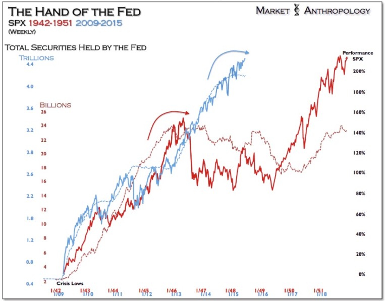 What upset the benevolent tide in the equity markets in 1946? The Fed and Treasury stepped away from their extraordinary support of the Treasury market and inflation found significant traction in the economy. Interestingly, investors didn't flee the bond market as if inflation would maintain its trajectory higher, but sold equities and eventually took shelter in the perceived safe-haven shores of the Treasury market. Why? Because of what investors had lived through over the past two decades. The Fed and Treasury might have succeeded at supporting the capital markets through considerable attenuating circumstances in the economy, but broader market psychologies were still entrenched and impaired from what participants had been through in the Great Depression.