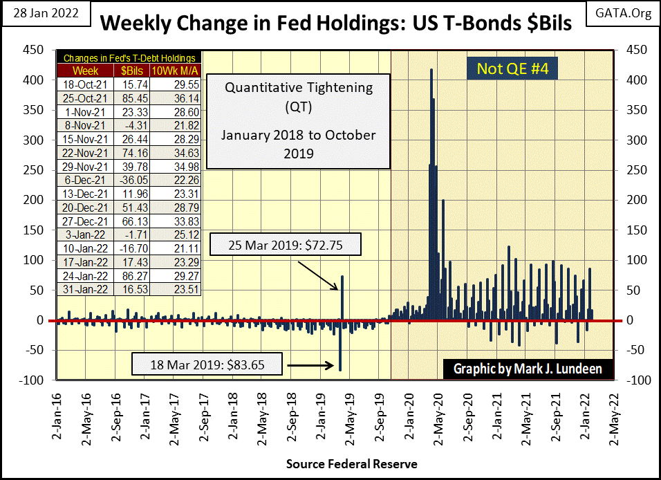 Looking at the weekly changes in the Federal Reserve’s balance sheet below, last week they “injected” an additional 86.27 billion dollars into the financial system, this week only 16.53 billion. I say only 16.53 billion for this week as that is how things now roll in our world. But before the sub-prime mortgage bear market, before October 2007, the FOMC used to inject into the financial system around 2.75 billion dollars * A MONTH *.