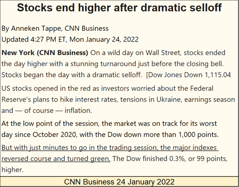 What kind of predictions can I make of all of this? Only that the Dow Jones in late January 2022 will continue to be very interesting.