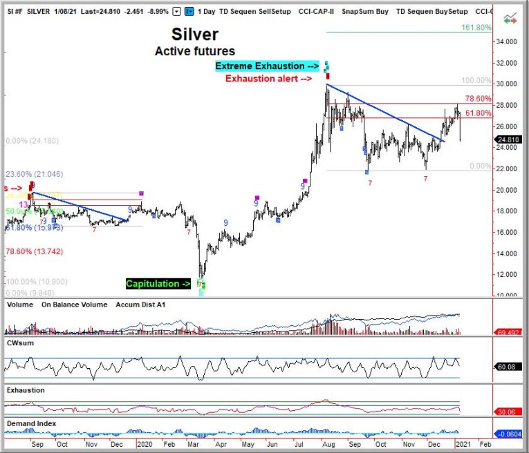 Today is a prime example of why it was necessary to use tight stops on gold and silver. Preservation of capital is crucial. The odds were against eight consecutive years of the precious metals having a strong continuous run in January/February. The initial Sequential 7 Buy Setup and seasonal low in December were good buys, but they needed to maintain upside momentum to stay alive. We will update the analysis this weekend.