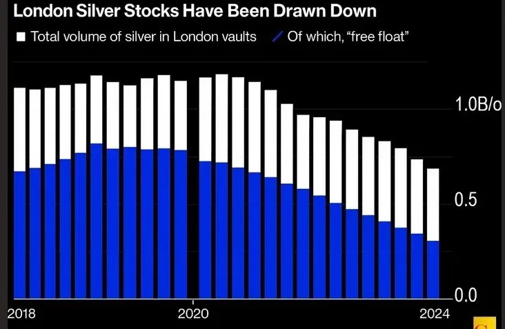 Prices in London’s daily silver auction have now broken records. Spot premiums have widened to as much as $3 over New York futures, while overnight borrowing costs have climbed beyond 100% annualized—levels possibly exceeding those of 1980.