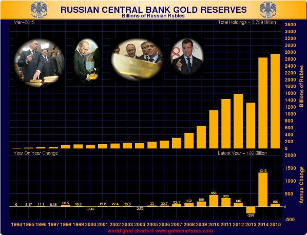 In the last nine months of 2014, in the midst of sanctions and the collapse in oil prices which led to sharp falls in the rouble, the central bank continued to buy gold, demonstrating the vital strategic importance placed by the government of Russia on the precious metal.