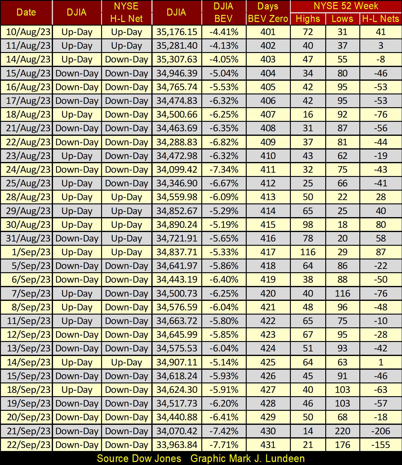 Note on Thursday and Friday of this week, the 52Wk H-L Nets fell below -100. Not a reason to panic. But not a reason to buy either.
