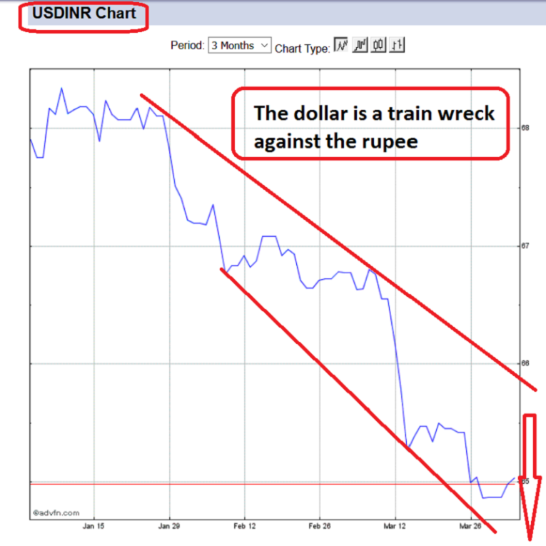 The only FOREX chart that is arguably more important to gold investors than the dollar-yen chart… is the dollar-rupee chart.