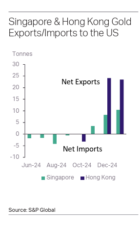 We’ve reported on the significant movement of gold from London to the U.S. The threat of tariffs pushed the futures price of gold (and silver) higher in New York, creating price discrepancies that traders sought to exploit.