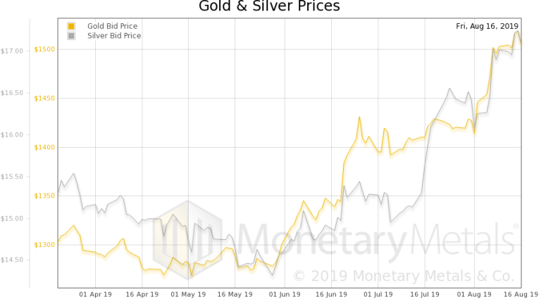 This week, the Monetary Metals Gold Fundamental Price went up further, to $1,516.