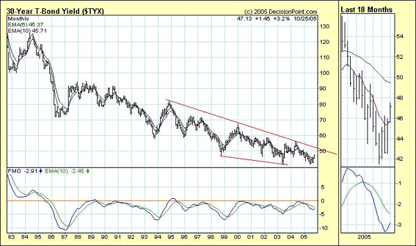- The break up of the monthly chart of the 30 year yield above the 6 and 10 month MA