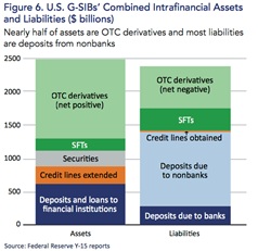 - Having to stand behind derivatives materially increases depositors’ risks because nearly half of the TBTF banks’ assets are OTC derivatives. Top four US banks hold well over $200T in derivatives, which is 12 times the size of the US GDP. JPM alone has over $70T in derivatives on its books! These are gross exposures but, as we saw in 2008, failure of any large counter-party can quickly turn gross into net.