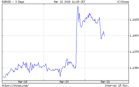 Chart 2: EUR/USD exchange rate from March 19 to March 21, 2019