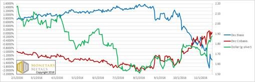 In silver, we had a price drop of about 80 cents. And what did the cobasis do? It went sideways. Silver did not become more scarce at the lower price. And this is according to the December contract with its unbalanced selling. Which affects silver more than gold.