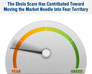 The Ebola epidemic has also contributed toward moving the needle to the fear side of the spectrum and driven investors to seek shelter not in gold necessarily but in so-called “Ebola stocks.” For every negative, as tragic as they often are, there is a positive. When a major hurricane hits Florida, for instance, insurance stocks fall while real estate stocks rise. The deadly Ebola virus, on top of an aging demographic, has helped make health care and biotechnology pop this year. The Daily Reckoning’s Paul Mampilly, in fact, calls this rally “the biggest biotech market ever.”