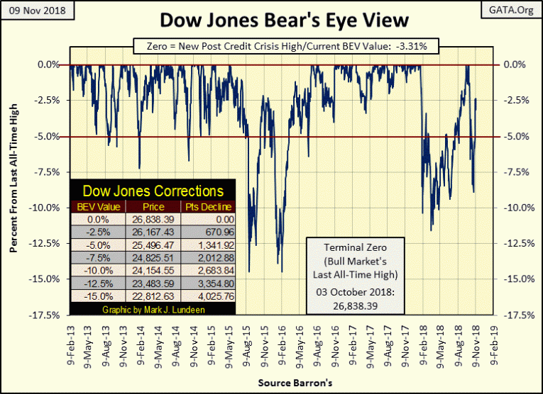 In any case, the Dow Jones saw a nice bump up from Friday last week, which ended with the Dow Jones at -5.81% in the BEV chart below. With the Dow Jones closing this week only -3.31% from its October 3rd last all-time high, it’s hard being short-term bearish. So I continue expecting the venerable Dow Jones to make additional new all-time highs before the end of 2018.