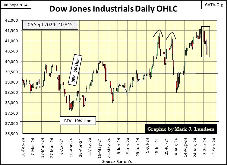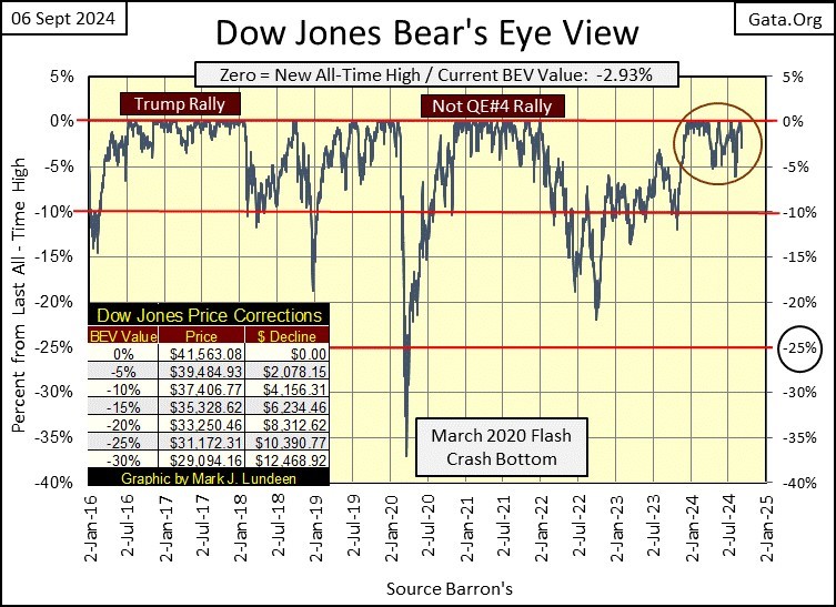 Just keep in mind, the BEV -5% line seen below, is 5% below the Dow Jones’ last all-time high, which is currently 41,563; the Dow Jones’ last BEV Zero seen on August 30th. The same goes for the BEV -10% line seen below. It too shifts upward with the rising Dow Jones.
