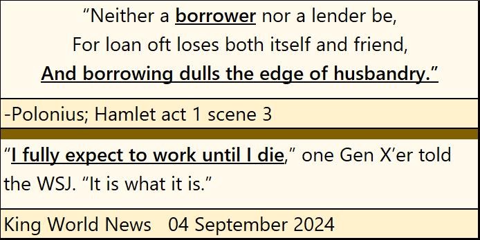 What does “borrowing dulls the edge of husbandry” mean? For the Gen Xer who the Wall Street Journal interviewed, apparently it means to service their debts to the Federal Reserve System, they will have to work to the day they die.