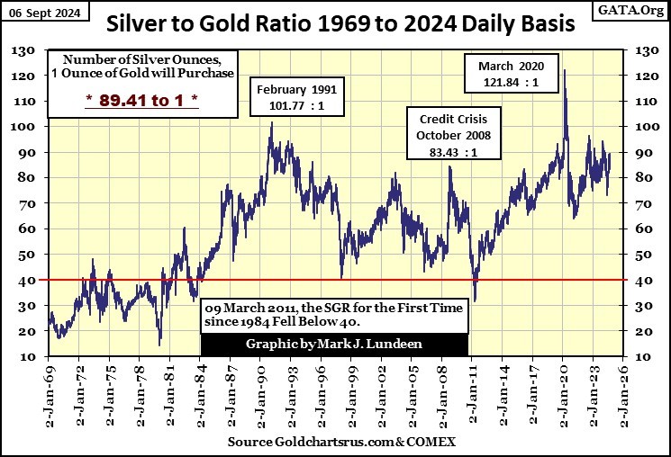 Here is something I’ve not published for a while, a chart for the Silver to Gold Ratio (SGR). This week, the SGR closed at 89.41 ounces of silver, for one ounce of gold, making silver cheap, and cheap is good when one is buying.