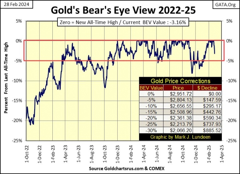 That may prove to be the thing to do, as 2025 now turns from February to March. What I’m going to do is simply wait until the Dow Jones finally closes, decisively below its BEV -10% line below, before I get too bearish. Looking at the table on the chart, that would be decisively closing below 40,512. When the Dow Jones finally sees some BEV values below -6%, or -7%, you may want to sell off a good portion of your holdings, to lock in whatever profits, your position currently holds.