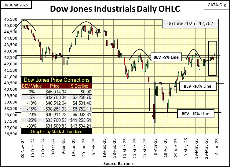 Here is my Dow Jones plotted in daily bars below. It doesn’t fit into the narrative of this article, but it’s a good chart to post weekly. This chart really makes clear the problem the Dow Jones has had, breaking above the line-of-resistance at 42,763, or its BEV -5% line. The Dow Jones at the close of this week, failed to do so by less than a dollar. Is this a joke?