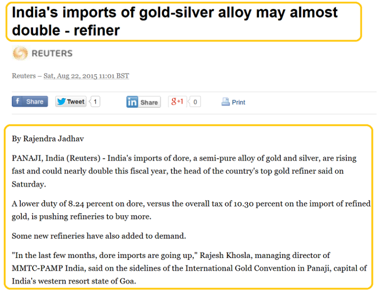The good news right now is that Indian jewellers, refiners, and economists are forecasting very strong demand over the next four months! That means any event in the West that is even modestly bullish for gold could send the price much higher.