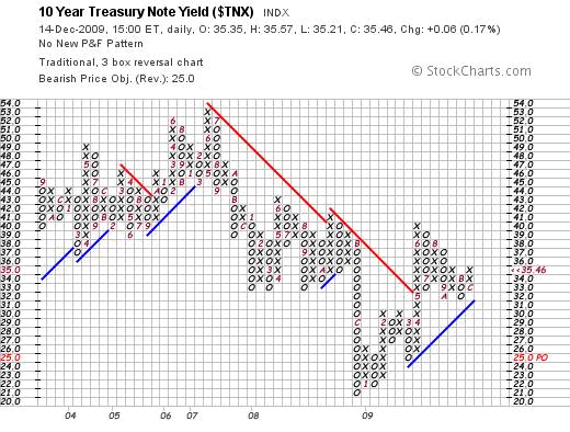 In this context, the following Point and Figure Chart of the Ten Year Yield is possibly also of some significance (also courtesy stockcharts.com)