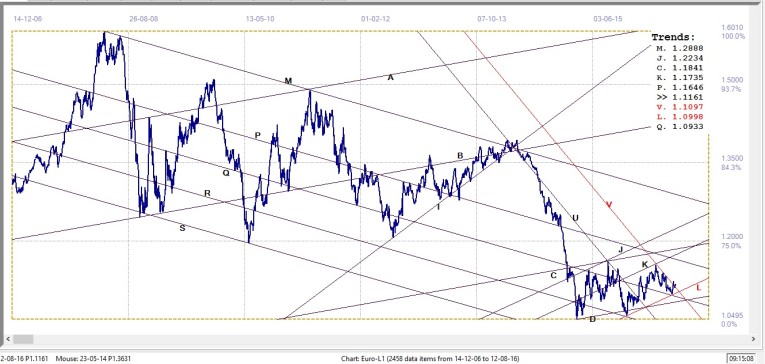 The comment of last week – that concern that the global economy is still cooling off, meant that demand for oil is still has less than supply seem to be the main driver of the price of crude. The price has improved a little last week, but not by a sufficient margin to break above the resistance at line L ($44.10) at the top of bear channel JKL.