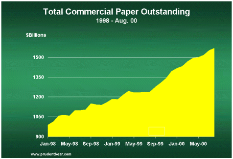 We agree completely with Mr. Lonski – not only will it be payback time going forward, but it should also be recognized that the most problematic loans are made during “a period of easy money.” We watched the post 1987 crash “easy money” period fuel real estate bubbles that culminated with the S&L and banking crisis of the early 1980s. This led to a historic “easy money” period in the early 1990s that fostered unprecedented financial system leverage and the severe credit market disruption in 1994. This crisis culminated with the Orange County bankruptcy and Mexican collapse, with the subsequent Mexican bailout. The next post-crisis period of easy money – “reliquefication” - fueled the terminal stage of credit and speculative excess throughout SE Asia, Russia, and emerging markets generally. The Fed was forced to respond to this series of inevitable busts by lowering interest rates and accommodating the greatest period of “easy money” in history – a virtual unending “reliquefication.” Unprecedented money and credit growth for the past two years has fueled an economic boom and a massive technology/Internet/Telecommunications bubble. Moreover, money and credit excess powered a great asset bubble, particularly in financial assets and home prices.