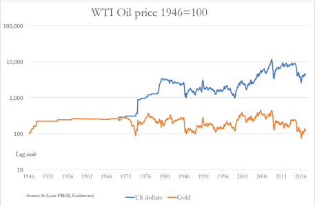 Before the failure of the gold pool in the late sixties, and the subsequent abandonment of the dollar-gold standard in 1971, oil, in common with all other commodities, was effectively priced in gold, the dollar being merely the settlement medium. Since 1971, the oil price measured in gold has varied in a 350% range, while in dollars the range has been many magnitudes greater. If the dollar is to be undermined, the dollar-oil price may rise, but the dollar’s purchasing power eliminates any benefit. Russia will almost certainly want to revert to the pre-1971 regime, of oil priced in gold, allowing her to accumulate monetary reserves that retain their value.