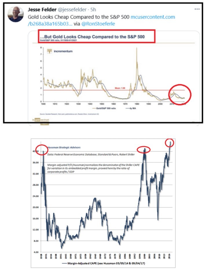 - Gold (COMEX) is inexpensive compared to the S&P 500 Index.