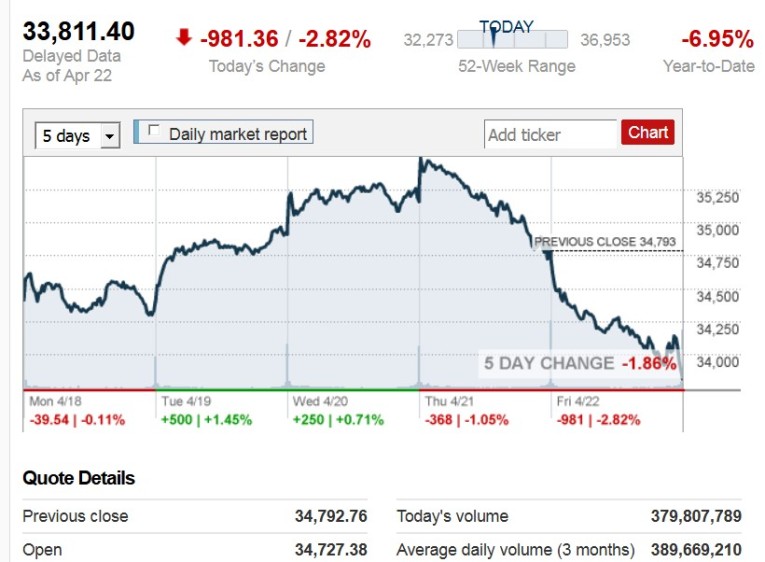 DJIA. 1-1-1981 to 1-3-2022. Last = 34 029.74