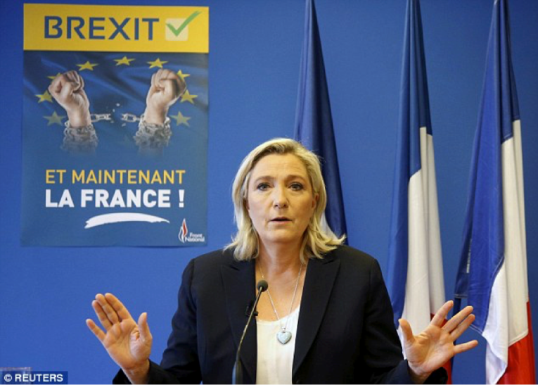 The leader of the National Front in France, Marine Le Pen, has hailed Britain’s decision to leave the EU – and has called for France to hold a similar referendum