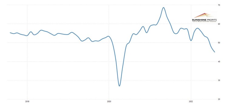 According to recent PMI reports, the third quarter of 2022 could also see negative GDP growth. Will gold finally rally then?