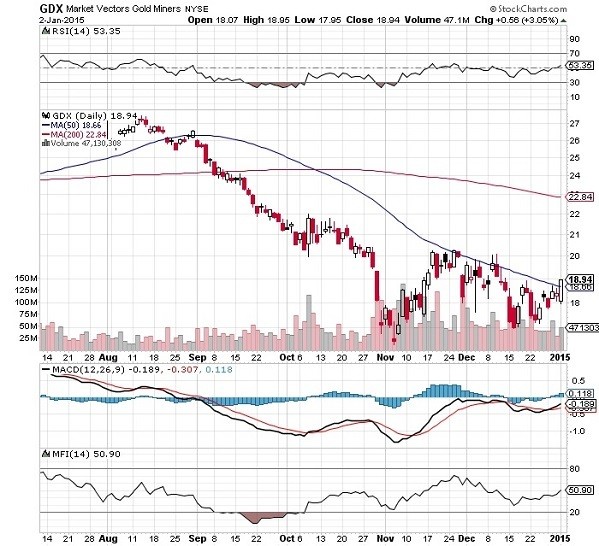 First of all, even though the RSI isn’t that low anymore, the trend in the Money Flow Index (MFI) is quite positive and seems to have bounced on what could be considered to be the bottom line. The MFI is a useful metric as it shows the buying and selling pressure in certain equities and in the final few days of 2014 here definitely was some upward pressure which started even before the end of the tax loss selling. That’s an encouraging sign, and we will be looking forward to see if this trend continues into the new year.