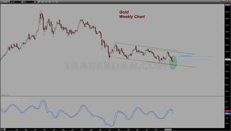 As most of you know by now, I am bearish on gold from an intermediate term perspective on account of the fact that I do believe that the Fed is eventually going to have to raise rates and try to somehow normalize monetary policy/interest rates. Perhaps I am wrong about that but I find it hard to believe that we can expect near zero interest rates into perpetuity. My own view is that the Fed can only do much to help the economy with monetary policy. What it cannot do however is to set fiscal policy or to deal with the heavy regulatory burden of an overreaching federal government. That will require a change in the party which controls the White House but that is unfortunately a long way off at this point. I maintain that had we a business friendly administration (think Obamacare and the burden that has produced on business for example, not to mention a run amok EPA) , coupled with near zero interest rates and more fiscally sound budgets ( controlled spending) that the economy would be in much better shape than it currently is. That being said, we have to work with what we have before us, not what we might wish for. For now, we have a Fed that has managed to inject enough uncertainty in regards to interest rates that it has taken some of the selling pressure off of gold for the time being.
