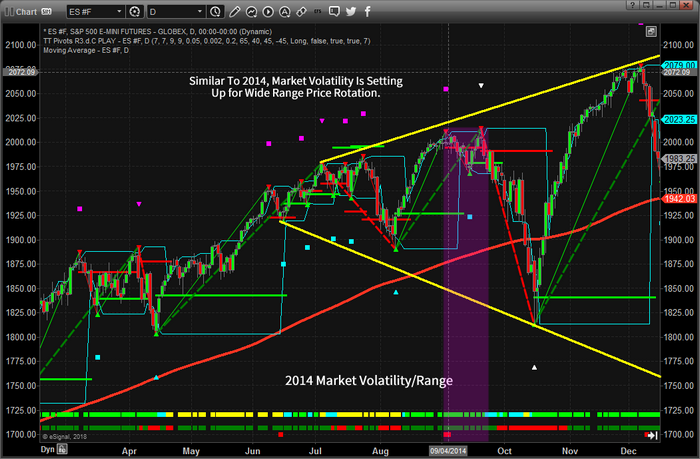 Our recent research shows that the current US markets are setting up for what could become a very interesting price range rotation as well as increased volatility. Our team of researchers at Technical Traders Ltd. have identified a number of key elements that appear to be in place similar to 2014/2015 where the market setup an initial deep price rotation, followed by a deeper price rotation only to end with an advanced price rally on the news that the US Fed would continue buying US debt.