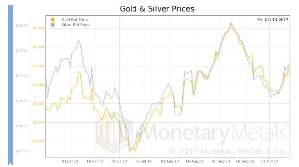 Our calculated Monetary Metals silver fundamental price is also up, 32 cents.