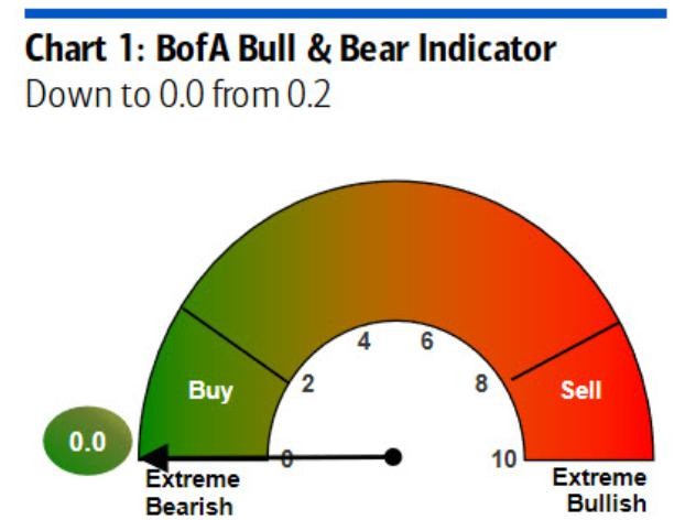 Finally, Bank of America’s Bull & Bear Indicator is at its lowest possible level. Again, this uses contrarian methodology, emphasizing how bearish over-positioning can spark sentiment shifts.
