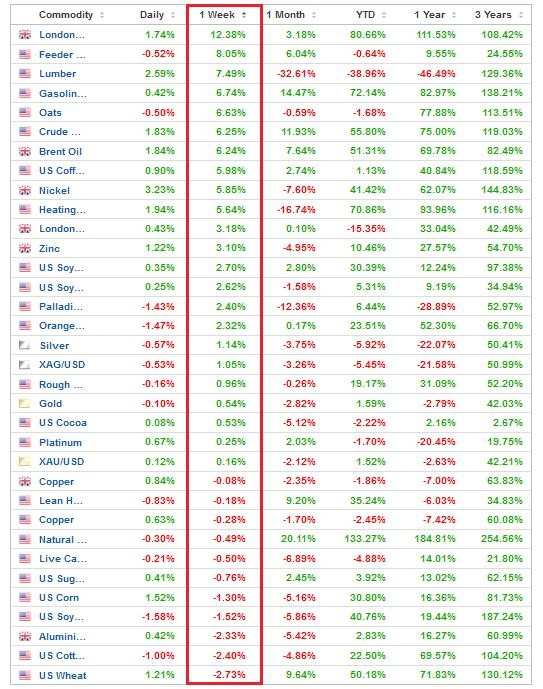To explain, the table above tallies the performance of commodities over various time periods. If you analyze the vertical red rectangle, notice how most commodities rallied alongside equities. As a result, the thesis was on full display.
