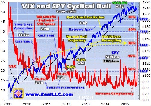 Yet amazingly, the Fed-deluded American traders ignored the sobering example of China’s gross failure of central-planned stock markets. They still clung to their zealous faith in the American central bank’s magical ability to levitate stock markets indefinitely. This was foolish, as I’ve argued many times in the past couple years. Artificially delaying selloffs makes markets feel less risky, but greatly amplifies risks in reality.