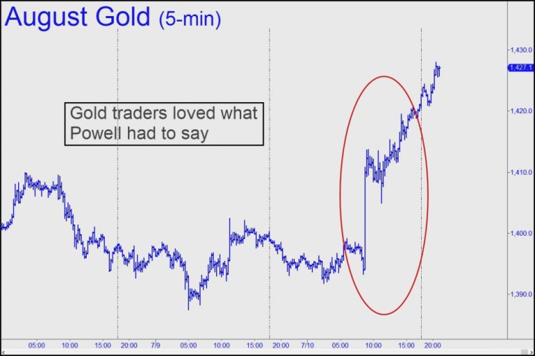 Fed Chief Powell supposedly has strong support inside Congress to fend off Trump’s calls for lower interest rates. How do we know this? Well, there was this headline atop the lead story in Wednesday’s Wall Street Journal: ‘Powell’s Support Inside Congress Is Deep’. And here was the sub-hed, in case you missed the point: ‘Lawmakers on both sides say they would oppose any bid to oust the Fed chairman’. Perhaps it was just bad timing, but the financial world’s newspaper of record has rarely looked more stupid. Oust Powell?? Give us a break! Less than a year into the job, the guy is looking like a potential hero in the promiscuous borrower/lender Hall of Fame, a worthy successor to ‘Easy Al’ Greenspan. For at the moment readers were savoring the WSJ story with their morning coffee, Powell was on Capitol Hill, telling Trump and the loose-credit rabble exactly what they wanted to hear — i.e., that money can be made to grow on trees, and that he will be more than happy to make this happen later in the month, when the FOMC next meets. On this news, U.S. stocks and gold shot higher, yields fell, and on Wall Street, at least, all seemed right with the world.