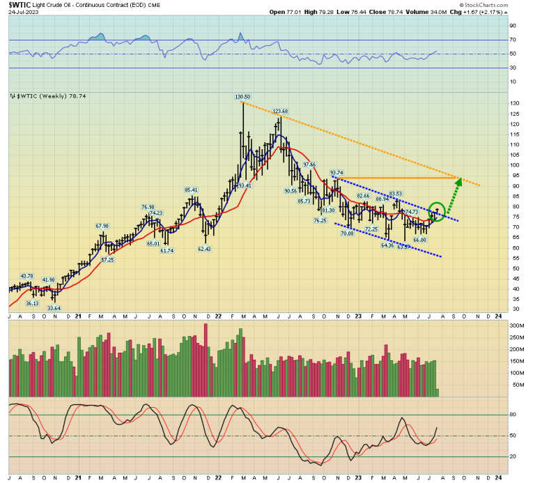 Double-click to enlarge. Oil is breaking out to the upside. My $93 medium-term target (at two converging trendlines) looks increasingly likely to be hit.