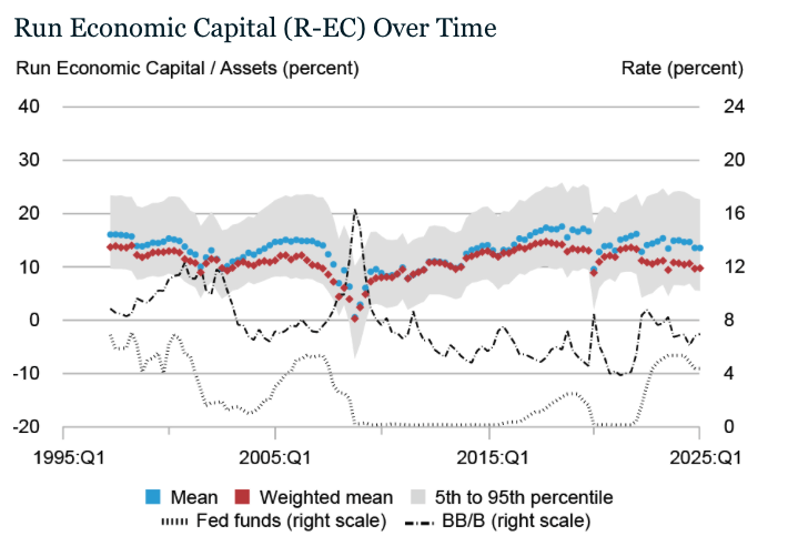 Last week, the Fed published another study on economic capital, presenting a range of results showing that its measure of economic capital is a more timely and accurate indicator of bank failure than more conventional accounting-based measures of bank solvency.