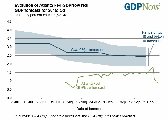 The Fed’s own GDPNow measure shows that GDP grew at a measly 0.9 in 3Q15.