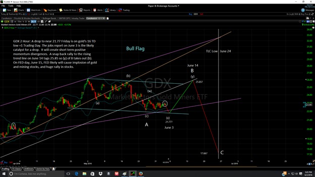 From this vantage point, it looks as though the precious metals complex will trade opposite the stock market throughout the month of June. The miners look as though they are bottoming, while the stock market looks as though it is topping. The jobs report on June 3rd will likely play with investors minds until June 15th, when all should reverse.