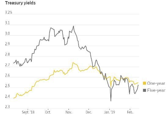 The Fed's shift also has caused some investors to move money from short-term bonds into slightly longer maturities. The five-year U.S. Treasury note now yields less than the one-year Treasury billan indication investors think the Fed will start cutting interest rates within the next few years. Since Jan. 3, the average spread on investment-grade corporate bonds maturing in five to seven years has tightened more than the spread on one-to-three-year bonds or bonds maturing in at least 10 years.