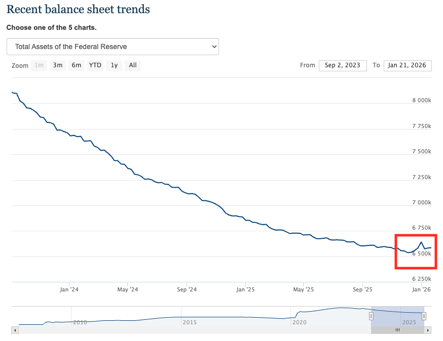 During the December meeting, the Fed announced it would relaunch quantitative easing (although it didn’t use that term). Since then, the Fed’s balance sheet has increased modestly by 48.4 million.