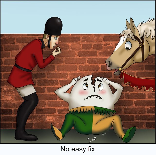 In any event, energy, food and precious metals remain undervalued assets, while commercial/residential real estate and their mortgages (a.k.a. death pledges) decline and default with little media awareness yet. The Old Testament tells us to retire debts every sabbatical. By that calendar we are at least a Jubilee (7X7 = 49 years) behind. Things getting very interesting indeed. Will all the king’s horses and men be able to put Humpty Dumpty back together again?