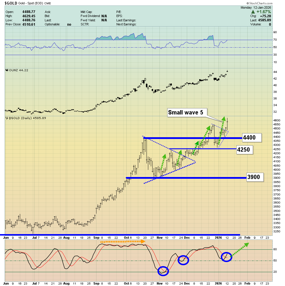 Big round numbers are in play and in that regard, one question for investors to consider is this: Could gold hit $5000 while the Dow hits 50,000 and silver hits $100? It seems likely and gold stock enthusiasts may want to also note that GDX is also closing in on the $100 marker.