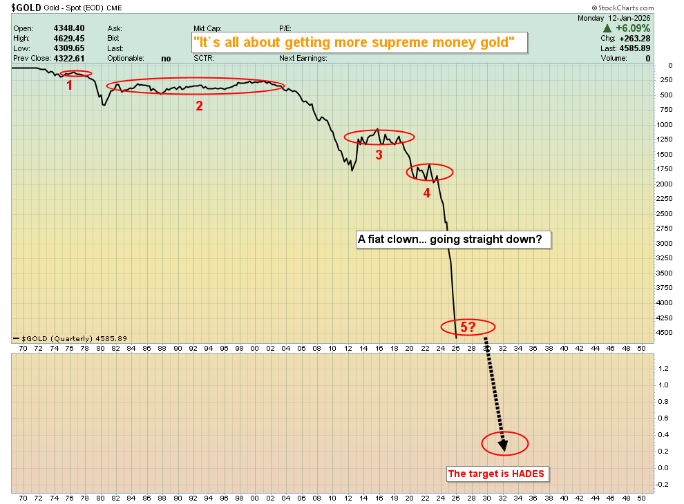 This is the “Death of the Dollar” chart. Clearly, investors (and regular citizens) need to focus on getting more gold rather than more dying fiat.