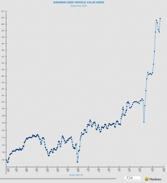 And after a brief pause – which even we conceded given that abnormally high used car prices should be “transitory” – Manheim revealed that wholesale used vehicle prices “increased 5.3% month-over-month in September” and “brought the Manheim Used Vehicle Index to [a record high] 204.8.”