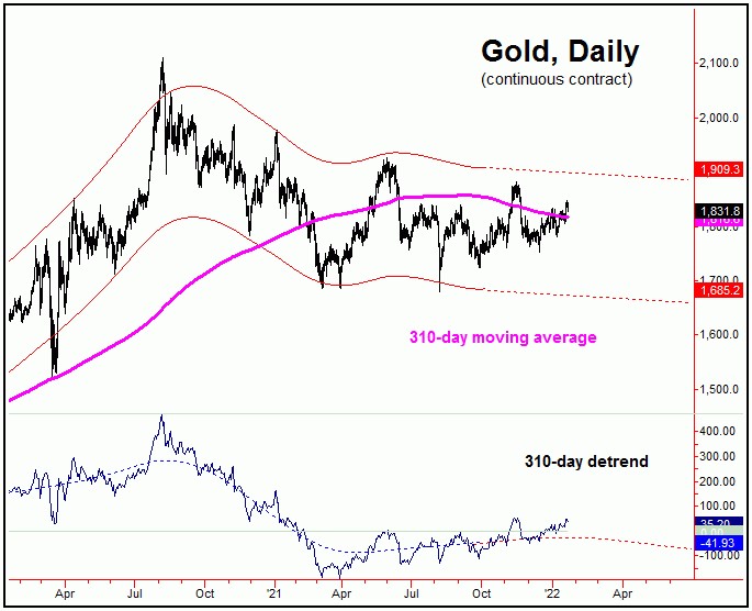 Going further with the above, the late-Spring, 2022 timeframe is when the next bigger low is projected to form, coming as a result of the larger 154-day and 310-day cycles, with the larger of these waves - the 310-day cycle - shown again on the chart below: